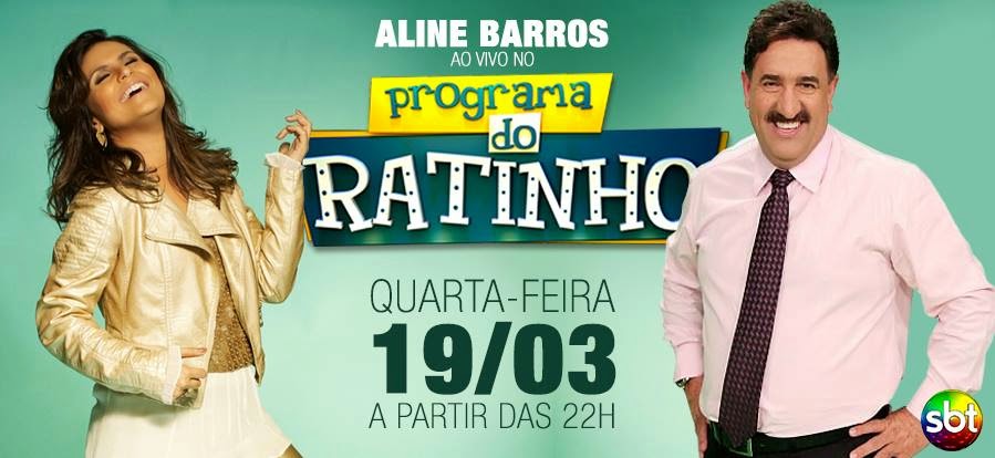 A Cantora Aline Barros estará nesta quarta-feira (19) no Programa do Ratinho. O Programa do Ratinho que vai ao ar de segunda à sexta-feira no SBT as 22h ao vivo, mais uma vez leva um artista da musica gospel. O programa que todas as quartas-feiras acontece o quadro boteco do ratinho, sempre com convidados.