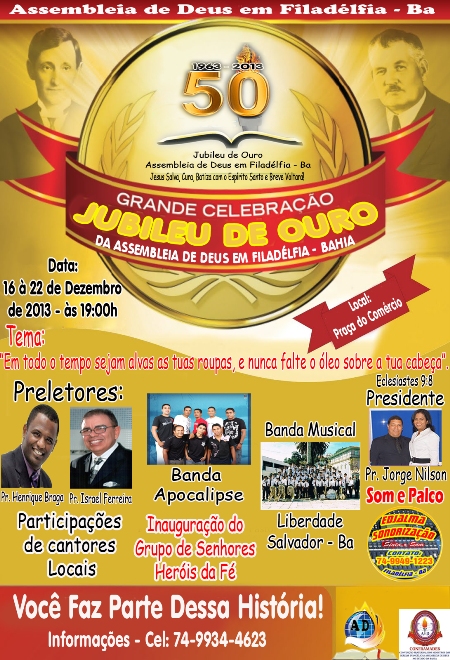 Assembléia de Deus em Filadélfia Vai comemorar Jubileu de Ouro