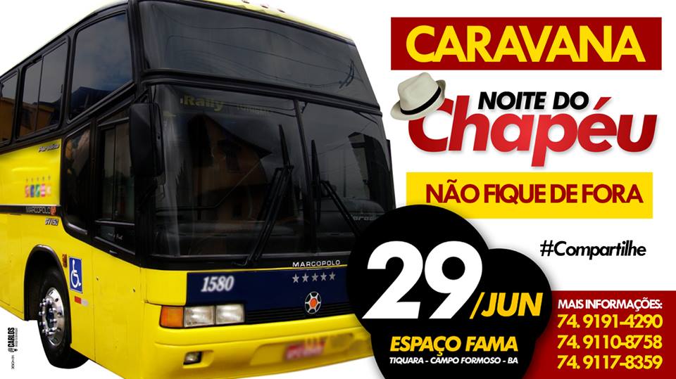 Carava para a #NoiteDoChapéu em Tiquara, ingresso apenas 2,00 reais e passagem 5,00 #