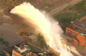 O rompimento ocorreu por volta das 6h na altura do número 4.500 da Estrada do Mendanha. Casas e carros ficaram destruídos com a força da água, lançada em um jato que alcançou 20 metros, de acordo com Marcos Djalma, tenente do Corpo de Bombeiros. Ainda não há informação do que provocou o rompimento da adutora.