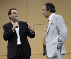 O pastor Silas Malafaia recebeu diversos políticos no culto de inauguração da nova sede da igreja Assembleia de Deus Vitória em Cristo (ADVEC). Entre eles o prefeito do Rio de Janeiro Eduardo Paes (PMDB) que teve a oportunidade de falar diante dos milhares de fiéis que participaram do culto no último sábado (5).